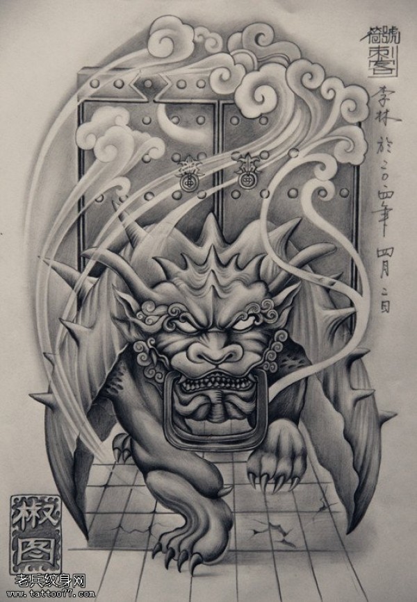 龙纹身手稿_一组老传统黑灰龙手稿纹身图案