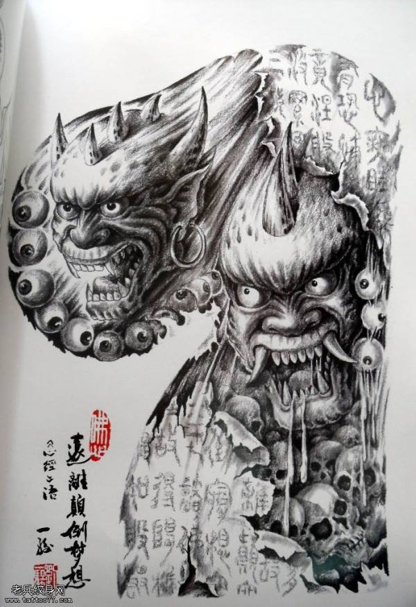 能面万媚纹身手稿_52张日式能剧面具纹身手稿图案素材欣赏