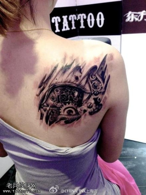 背部3D机械纹身图案
