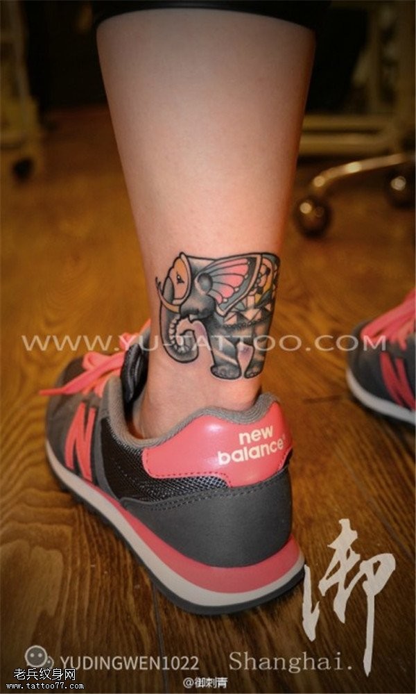 小腿上一款大象纹身图案_腿部纹身图案大全_纹身图吧