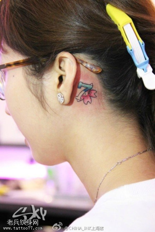 多款女生耳后黑色线条素描文艺小清新小图案纹身图案