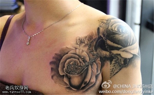 女生肩花纹身_15张女性双肩对称的肩花纹身图案作品图片