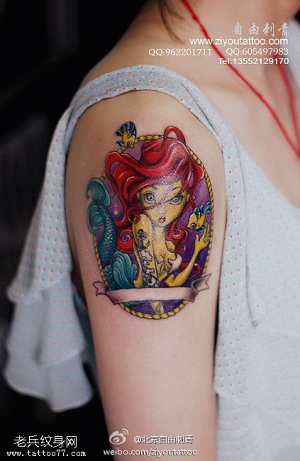 手臂彩色个性美人鱼纹身图案
