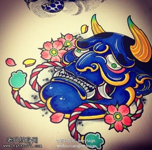 能面万媚纹身手稿_52张日式能剧面具纹身手稿图案素材欣赏