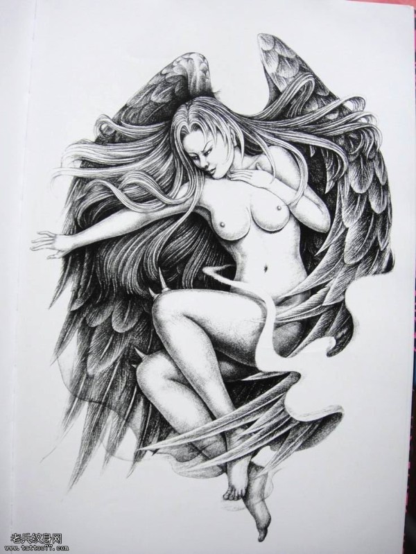 最好纹身图吧老兵纹身一款漂亮的天使纹身图案