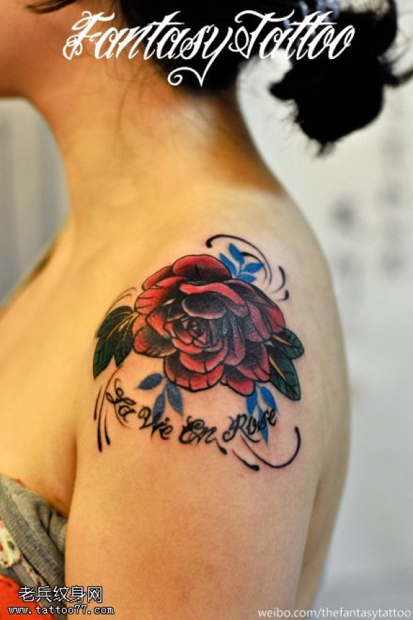 女生肩花纹身_15张女性双肩对称的肩花纹身图案作品图片
