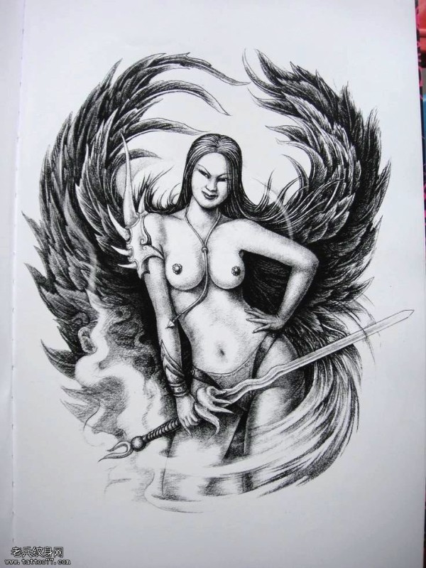 一款漂亮的天使纹身图案由纹身图吧给大家