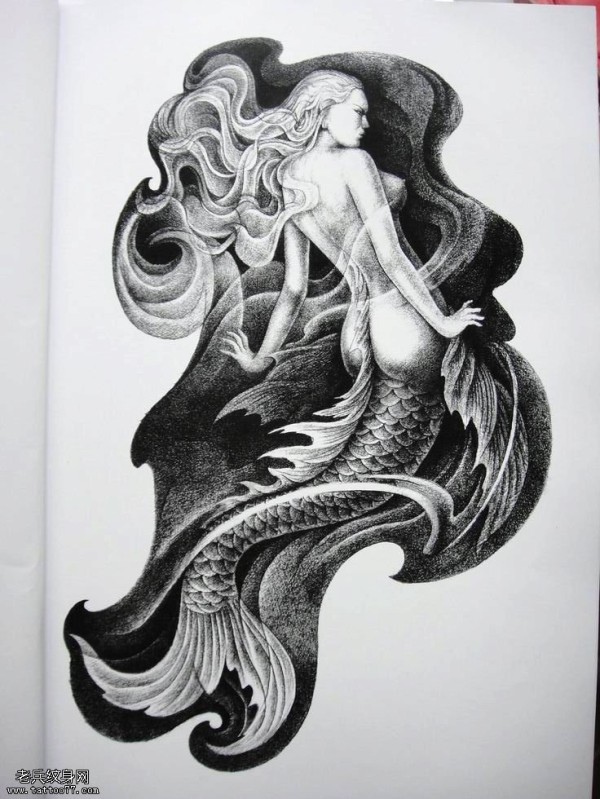 纹身图吧为大家一款性感的美人鱼纹身图案