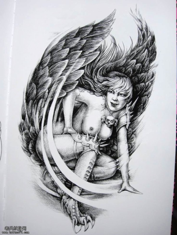 一款漂亮的天使纹身图案由纹身图吧