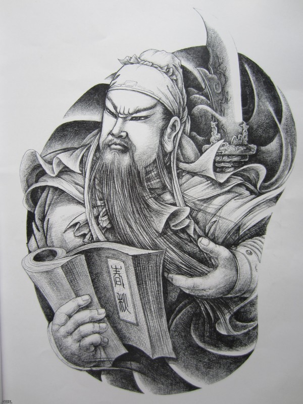 一款传统关公纹身图案由纹身图吧给大家欣赏