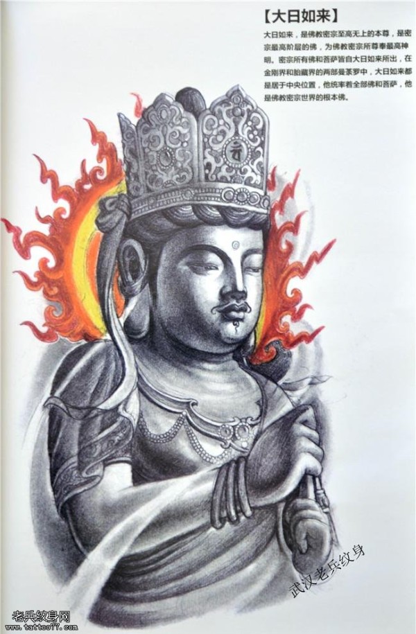 适合大臂大日如来手稿纹身图案