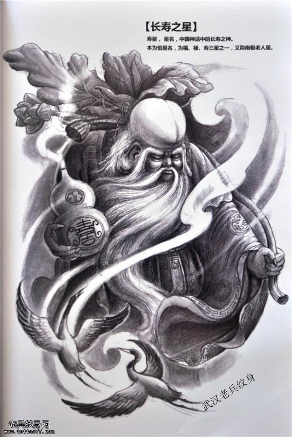 包腿包臂长寿之星寿星手稿纹身图案
