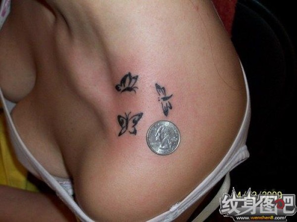 锁骨上面两只蝴蝶和一只蜻蜓