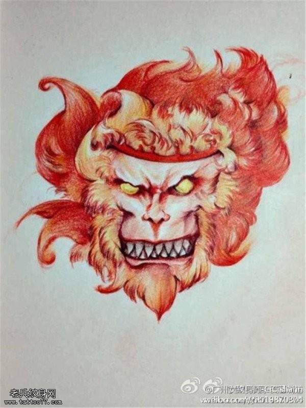 愤怒的孙悟空纹身手稿图案