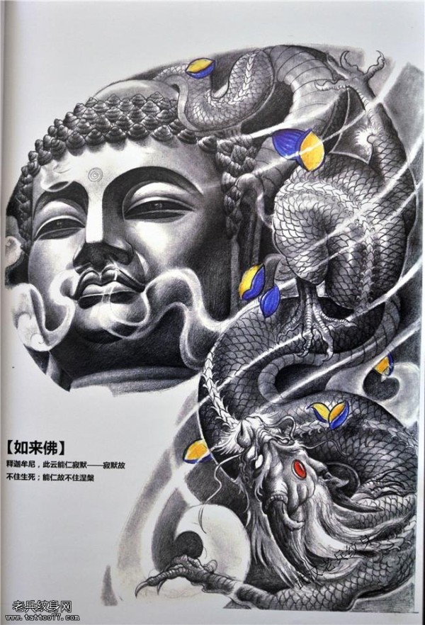 传统半胛大日如来佛祖龙手稿纹身图案