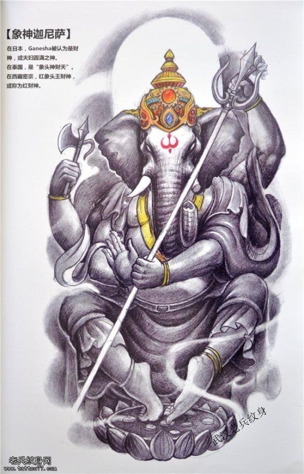 一张包腿包臂象神迦尼萨手稿纹身图案