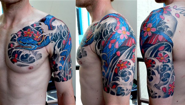日式手彫刺青作品—半甲龙很感谢客户认可手彫刺青,手彫是日本纹身的手工雕刻技术,时间可以追溯到日本17世纪的江户时代。19世纪,手彫技术被日本黑帮挪用,被用作入会仪式,象征着从此就是江湖中人。在日式传统