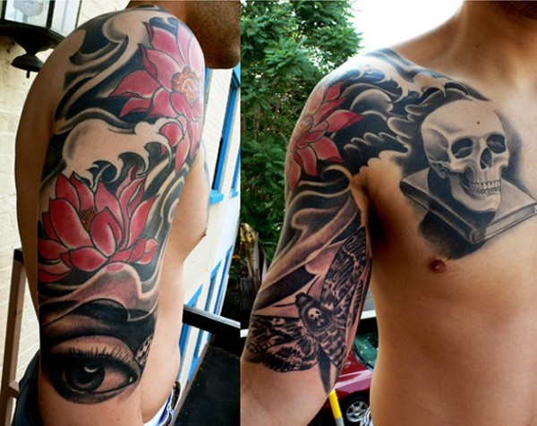 巨大的黑灰色满胸纹身图案大全来自纹身师格雷格