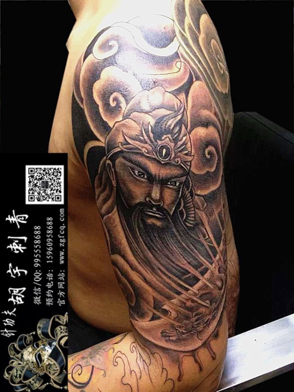 大臂关二爷纹身