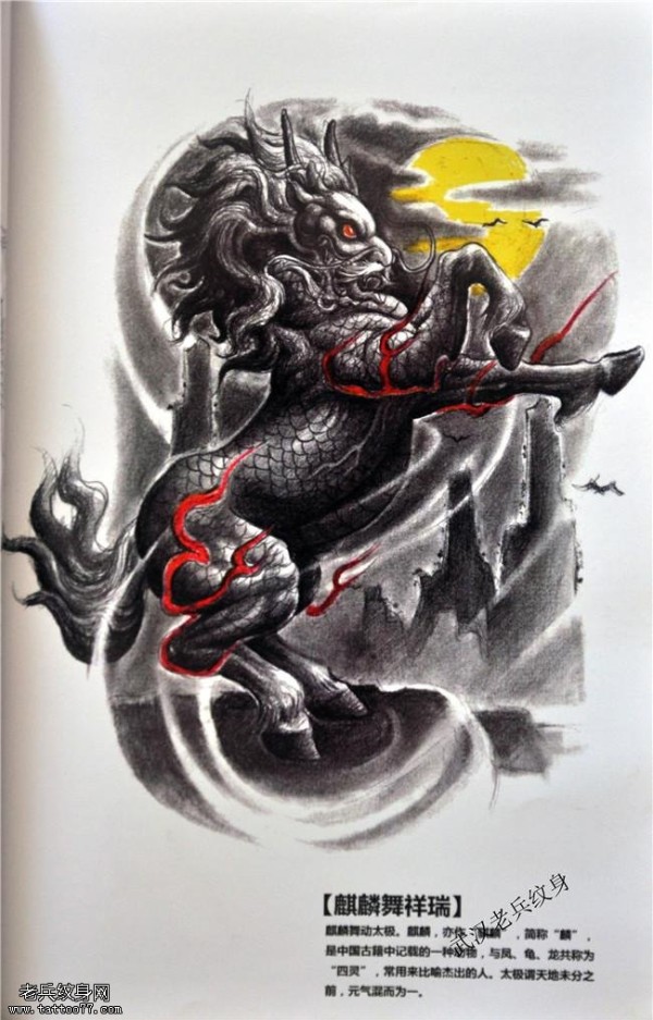 包腿包臂麒麟舞祥瑞手稿纹身图案