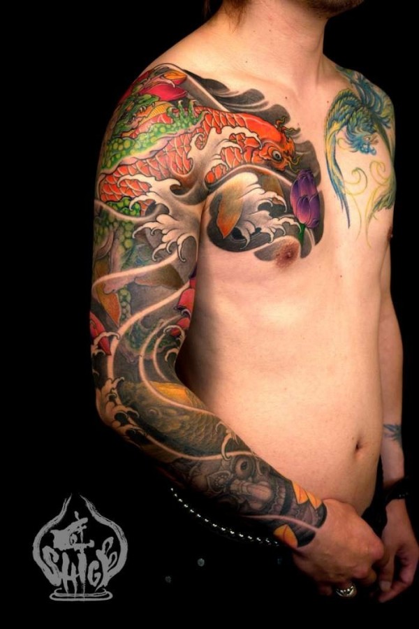 日式手彫刺青作品—半甲龙很感谢客户认可手彫刺青,手彫是日本纹身的手工雕刻技术,时间可以追溯到日本17世纪的江户时代。19世纪,手彫技术被日本黑帮挪用,被用作入会仪式,象征着从此就是江湖中人。在日式传统