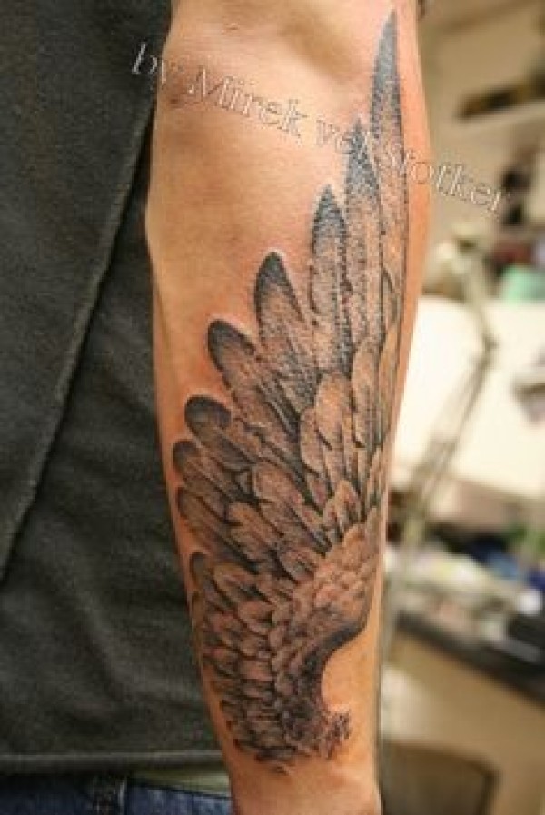 手臂上炫酷的翅膀纹身