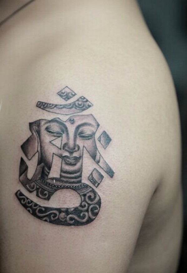 大臂上一款个性的梵文纹身