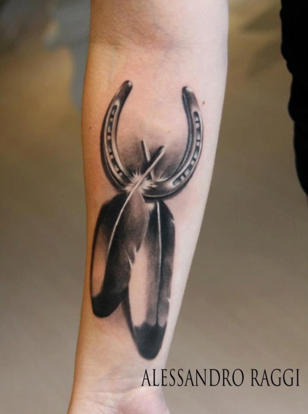 手臂上唯美漂亮的羽毛纹身