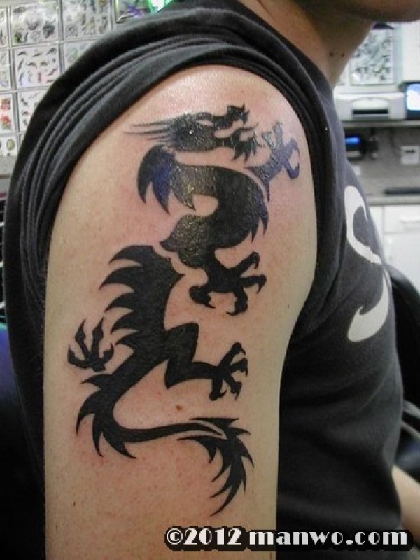 龙纹身手稿_一组老传统黑灰龙手稿纹身图案