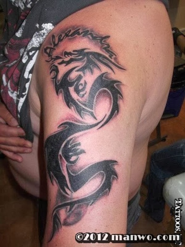 龙纹身手稿_一组老传统黑灰龙手稿纹身图案