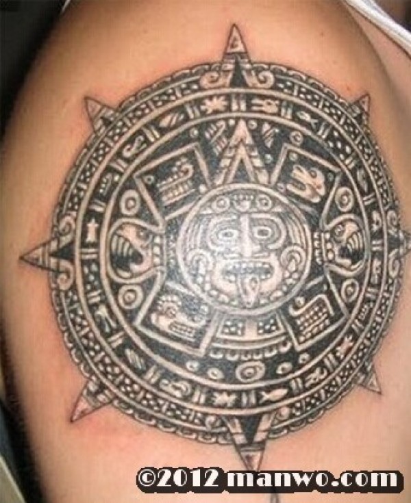 大臂上帅气的太阳图腾纹身