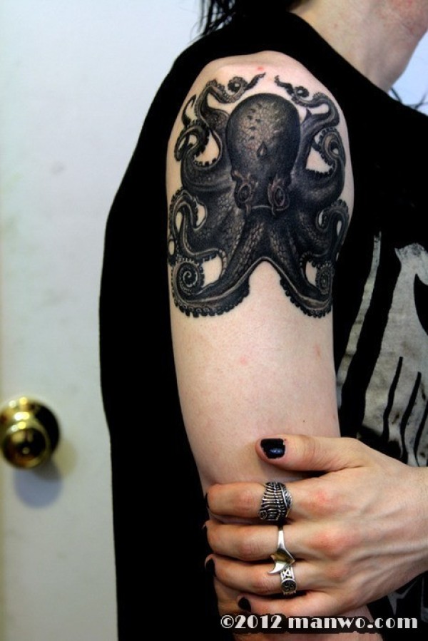 个性潮流的手臂章鱼纹身