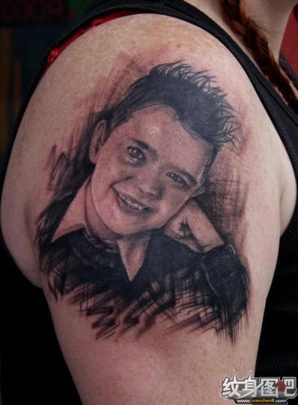 女性肩部肖像刺青_肖像纹身图案大全_纹身图吧