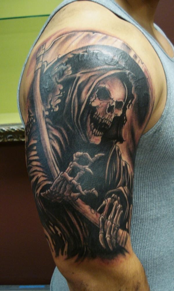 手臂上非常有个性的死神纹身