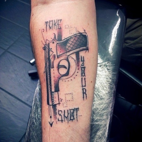 手臂上一款帅气的手枪纹身