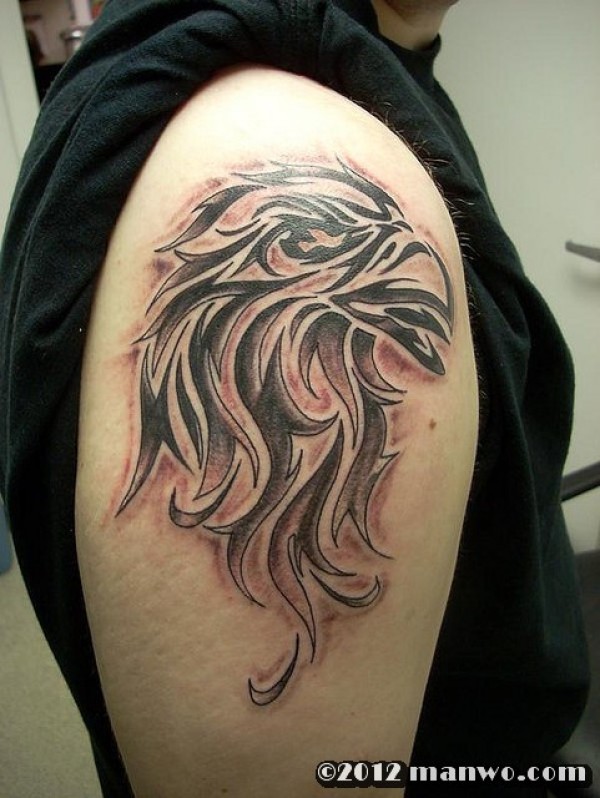 大臂上帅气的老鹰图腾纹身