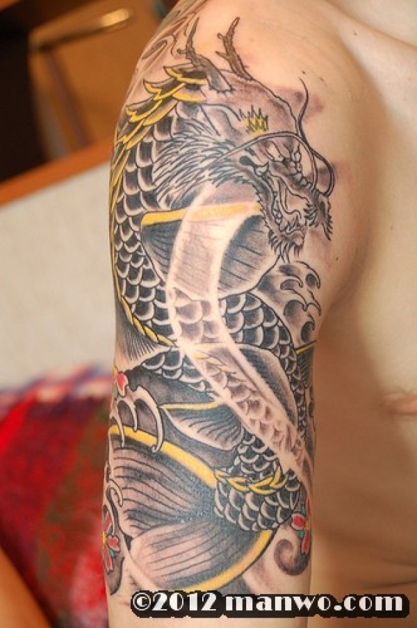 日式手彫刺青作品—半甲龙很感谢客户认可手彫刺青,手彫是日本纹身的手工雕刻技术,时间可以追溯到日本17世纪的江户时代。19世纪,手彫技术被日本黑帮挪用,被用作入会仪式,象征着从此就是江湖中人。在日式传统