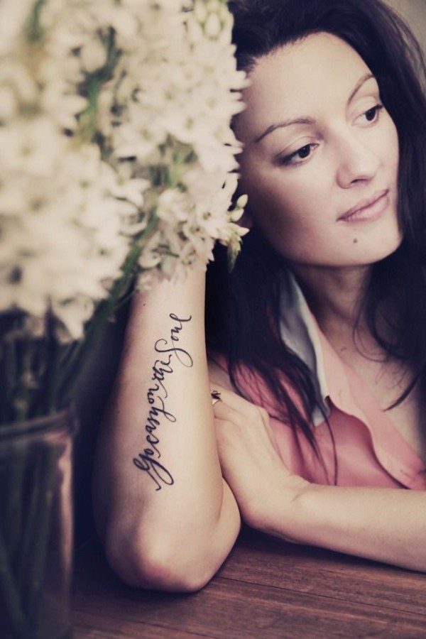 手臂上一条长长的英文纹身