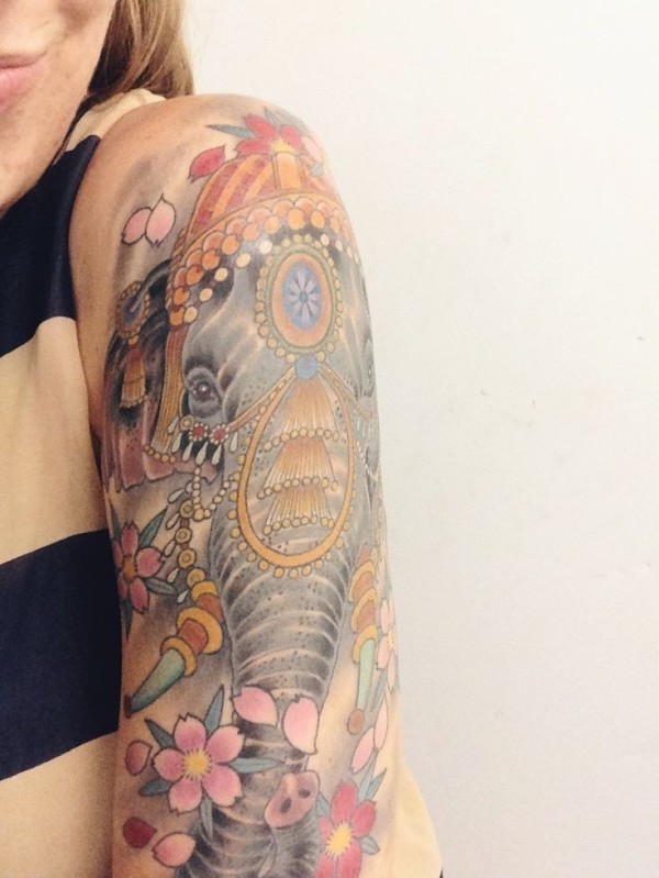 手臂一款彩色蘑菇纹身图案_臂部纹身图案大全_纹身图吧