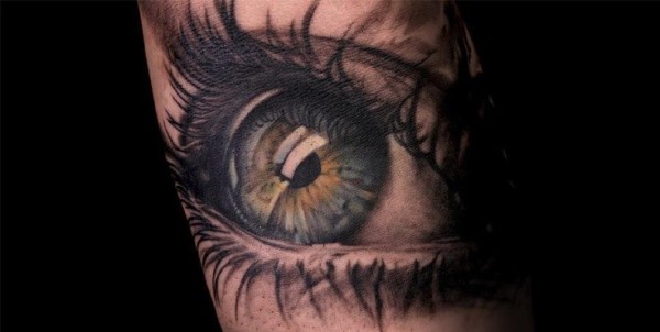 手臂上非常逼真的一款3D眼睛纹身