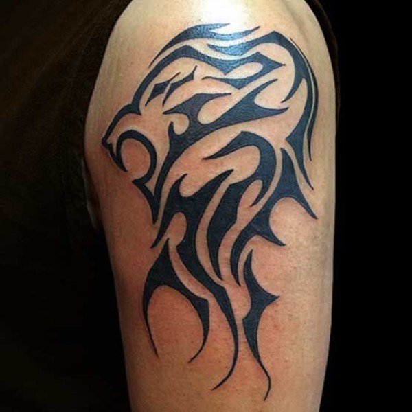 大臂上帅气的狮子图腾纹身