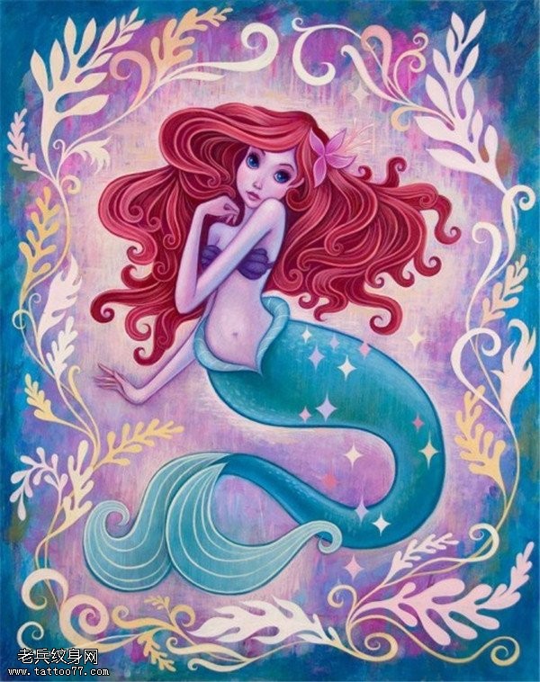 彩色个性美人鱼纹身手稿图片