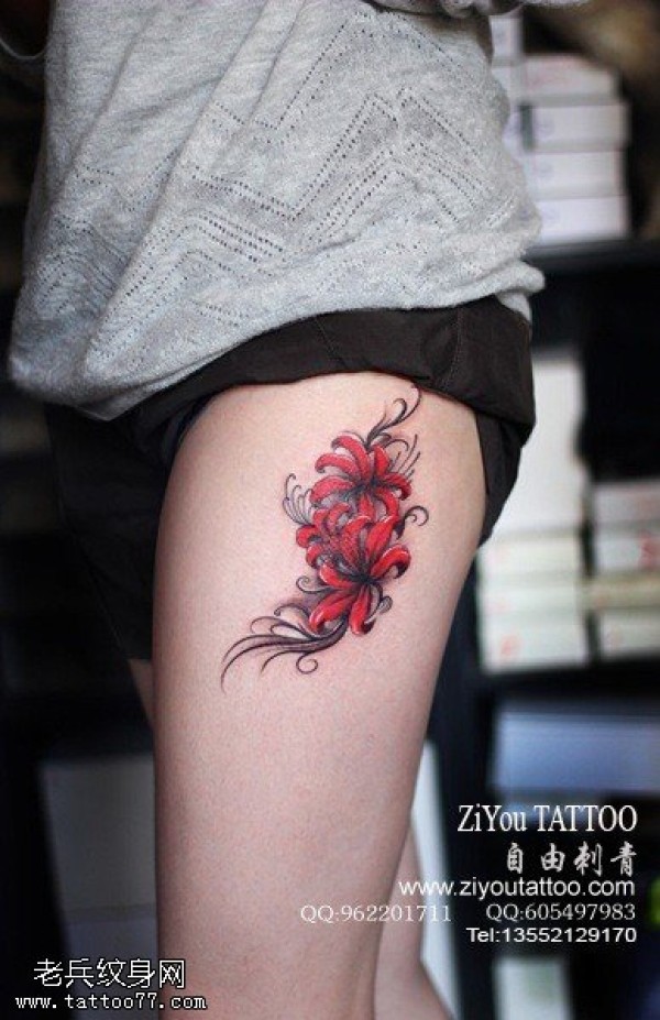 女孩腿部唯美刺青_腿部纹身图案大全_纹身图吧