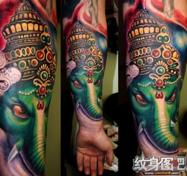 手臂黑灰象神_一组12张手臂上的黑灰象神纹身图案作品欣赏