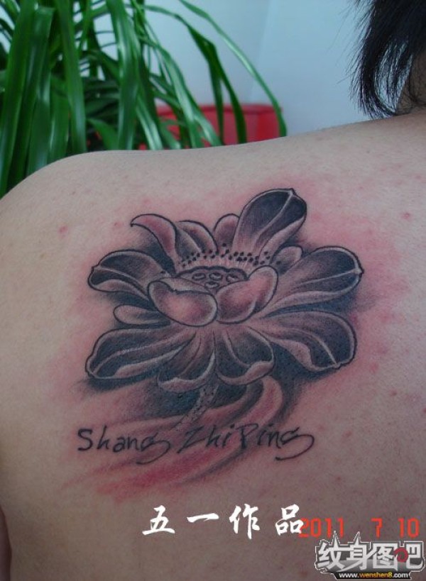 女生肩花纹身_15张女性双肩对称的肩花纹身图案作品图片