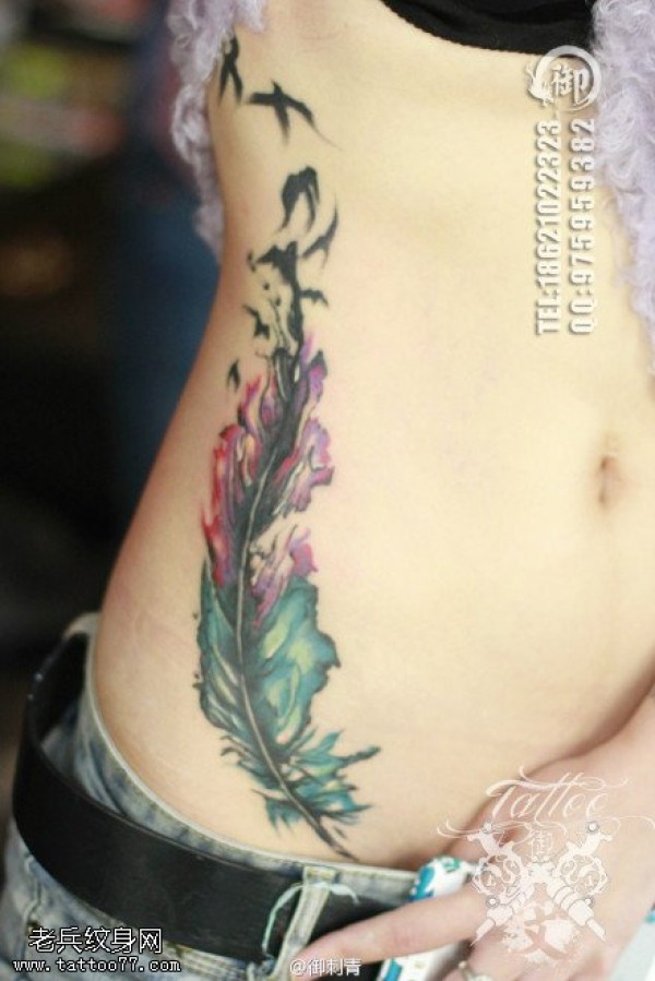分享一款腰部时尚性感的蝶恋花纹身图案_腰部纹身图案大全_纹身图吧