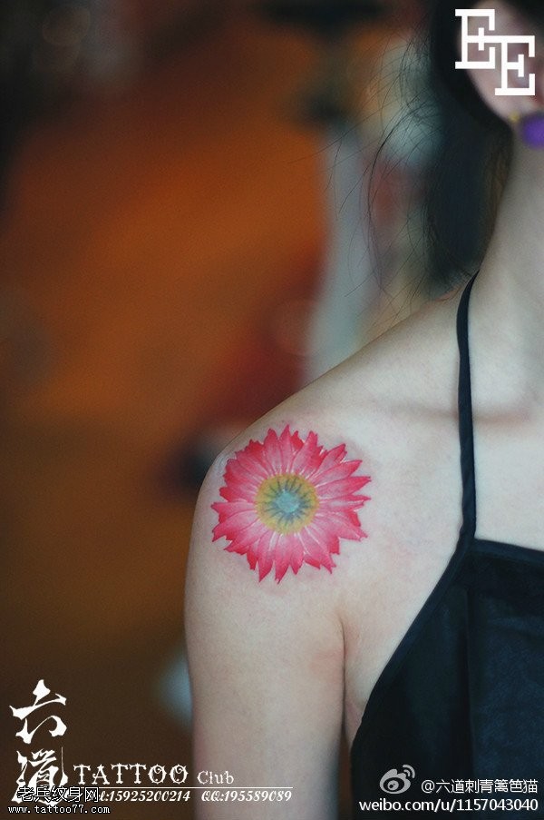 女生肩花纹身_15张女性双肩对称的肩花纹身图案作品图片