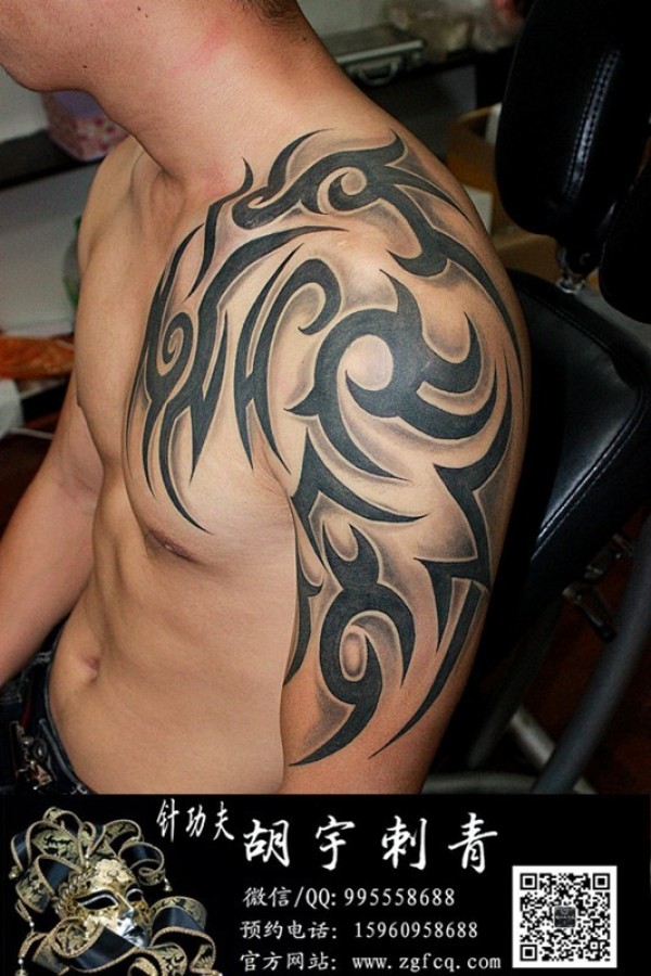 老虎图腾纹身 多款黑灰纹身点刺技巧老虎纹身图案