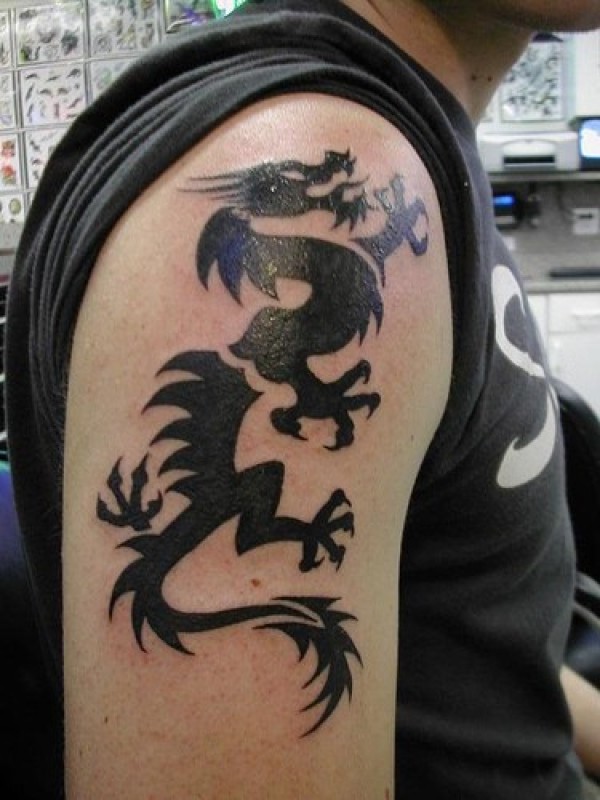 龙纹身手稿_一组老传统黑灰龙手稿纹身图案