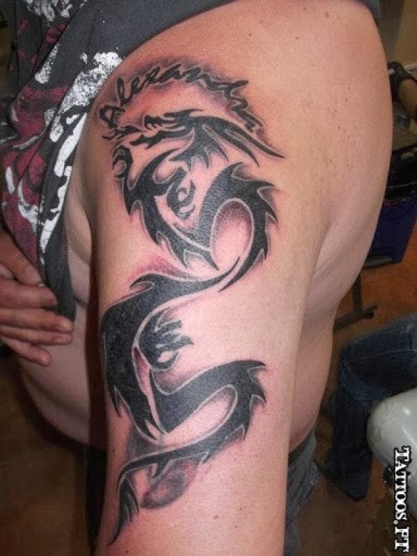 龙纹身手稿_一组老传统黑灰龙手稿纹身图案